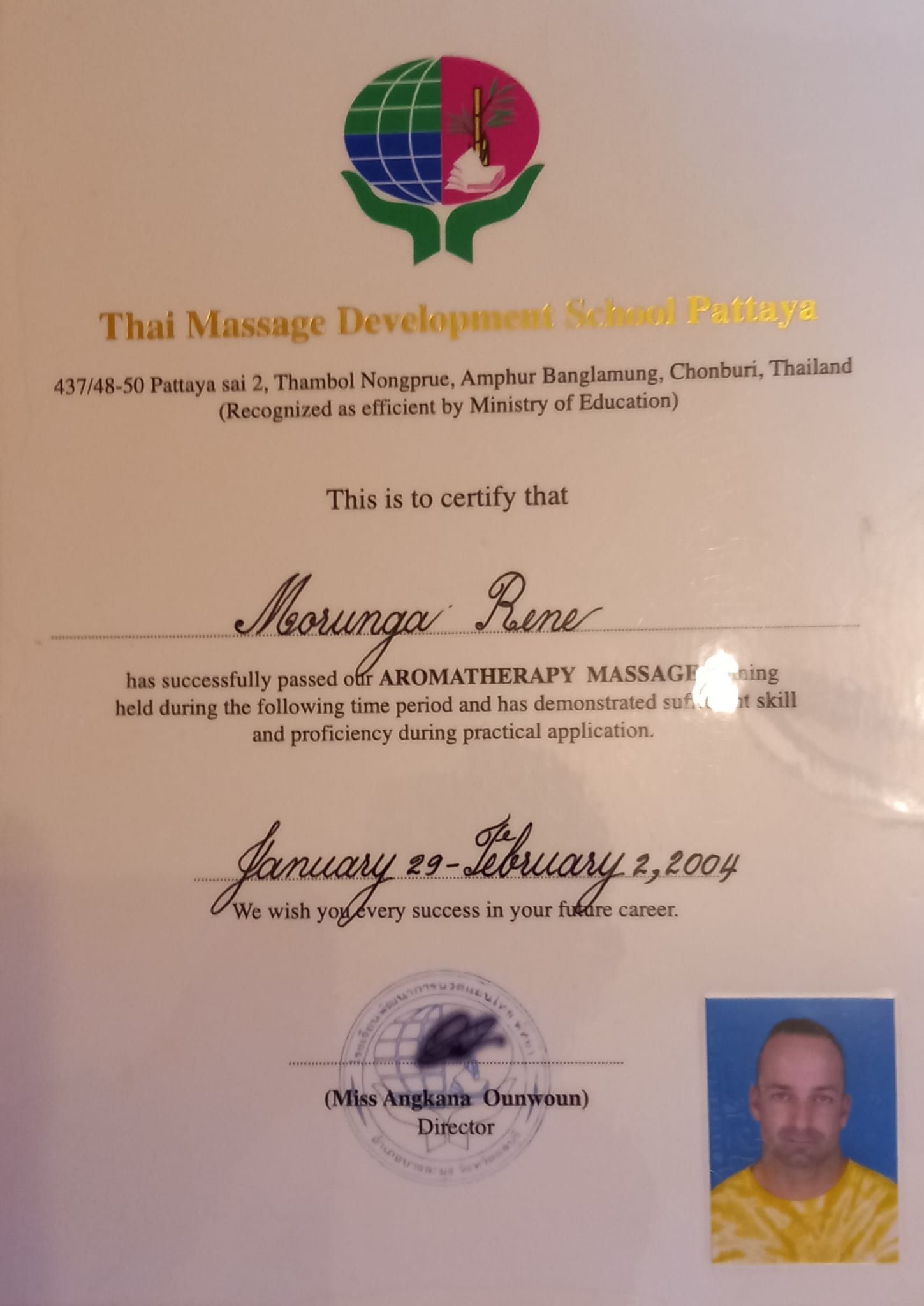 Ich besuchte insgesamt drei verschiedene Massageschulen in Bangkok und Pattaya. Neben dem ständigen Lernen und der Begegnung mit vielen wundervollen Menschen war es das Schönste für mich herauszufinden, dass ich das notwendige Talent und Einfühlungsvermögen habe, den Menschen diese neue Erfahrung weiterzugeben.